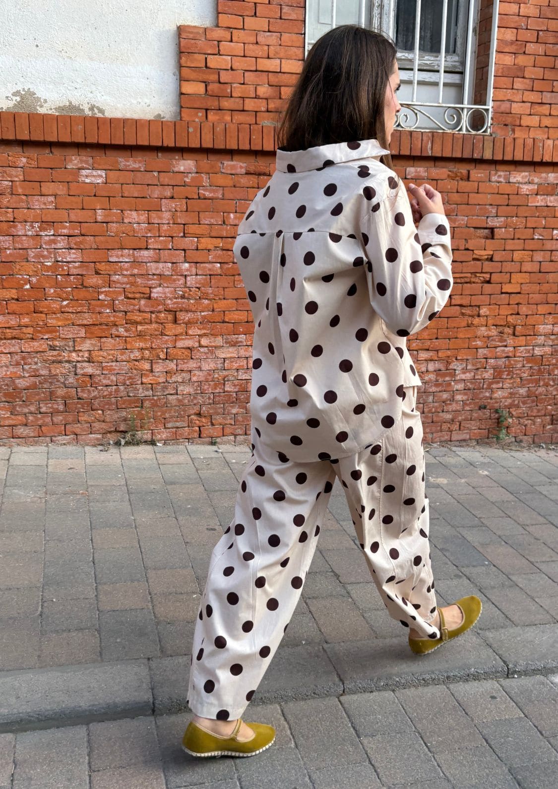 ✔︎ Estampado de lunares beige y marrón.